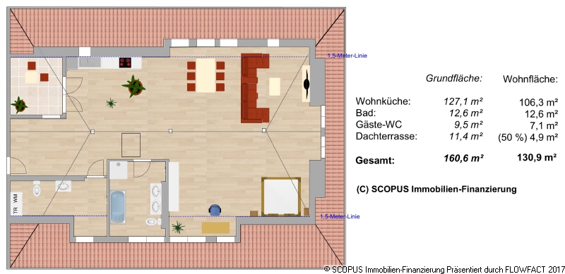 Einzigartige Dachgeschoss-Wohnung mit großer Wohnküche und Dachterrasse